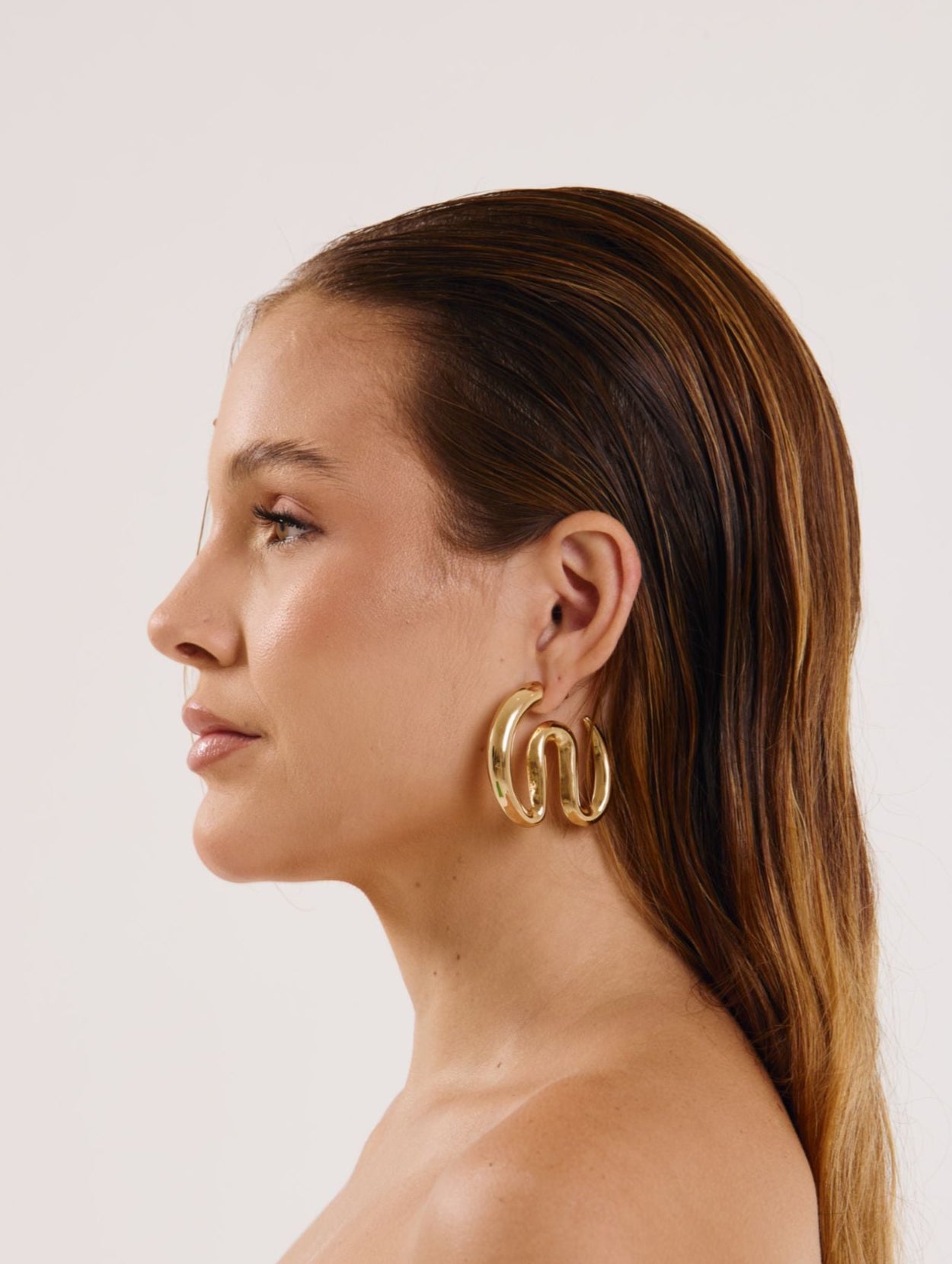 Brinco argola maxi em metal dourado, com design moderno em formato ondulado que une sofisticação e ousadia. Uma peça versátil que combina facilmente com diferentes estilos, do casual ao elegante, garantindo destaque em qualquer produção.