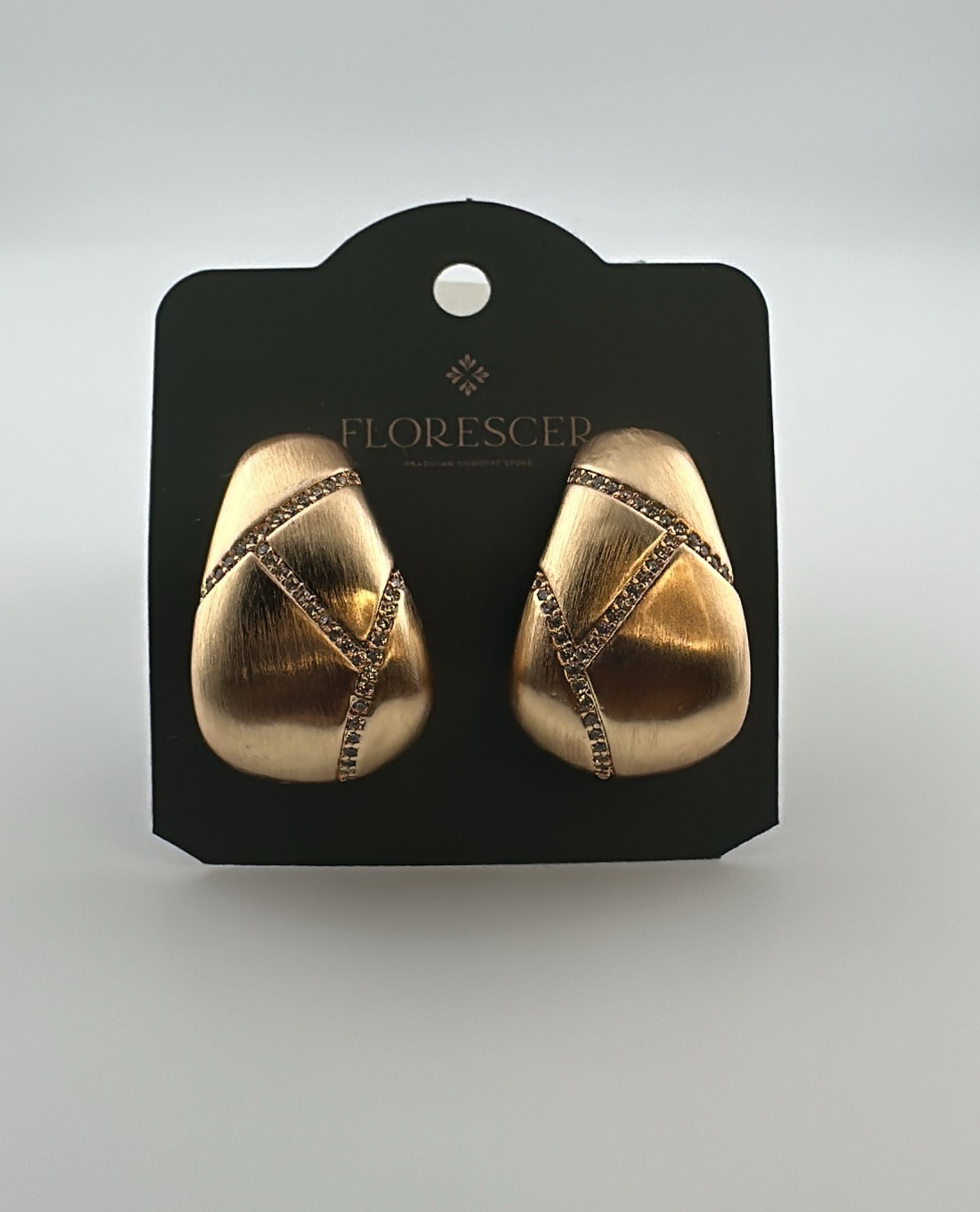 Brinco Semijoia de Formato Moderno com Zircônia – Banho de Ouro 18K, Elegância e Sofisticação