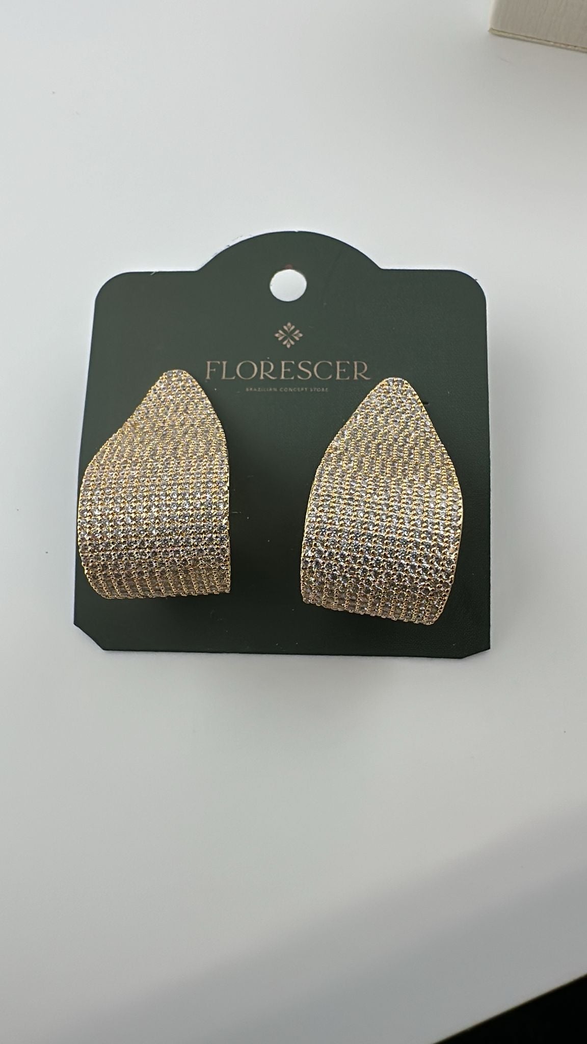 Brinco Semijoia Gota Radiante – Cravejado com Zircônia, Banho de Ouro 18K, Modernidade e Elegância